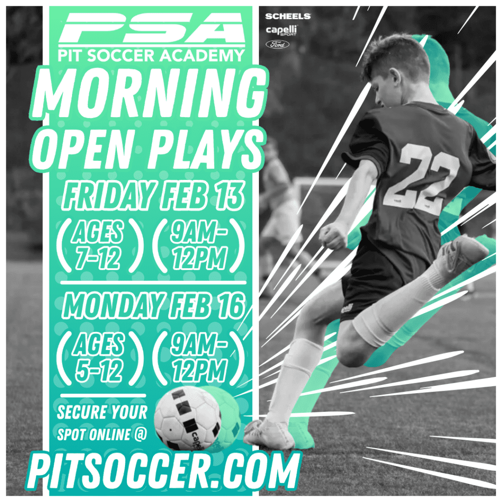 PIT Soccer Academy is hosting TWO Morning Youth Open Play sessions in February!